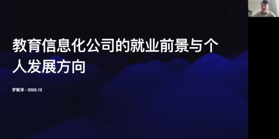 金智教育产品经理罗智淳做题为《教育信息化公司的就业前景和个人发展方向》主题讲座