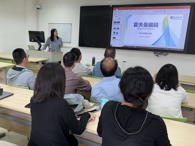 活动伊始,王心怡老师围绕《霍夫曼编码》展开授课,采用启发式与案例式相结合的教学方式,将复杂的工科知识以清晰的逻辑和生动的语言层层展开。她注重学生思维的引导,巧妙融入理性思维的培养,体现出新一代青年教师积极探索教学方法、不断提升教学效果的努力与创新。