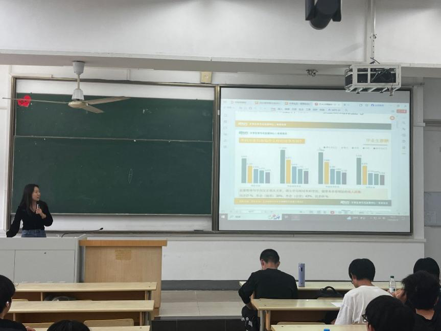 为帮助2023级本科生学生明晰考研方向,科学规划备考路径,2025年4月30日下午,我院在教4-208举办考研规划专题讲座。本次讲座由2023级本科生辅导员吴美萱老师主讲,新东方考研机构董玲老师辅助指导,全体2023级本科生参加。